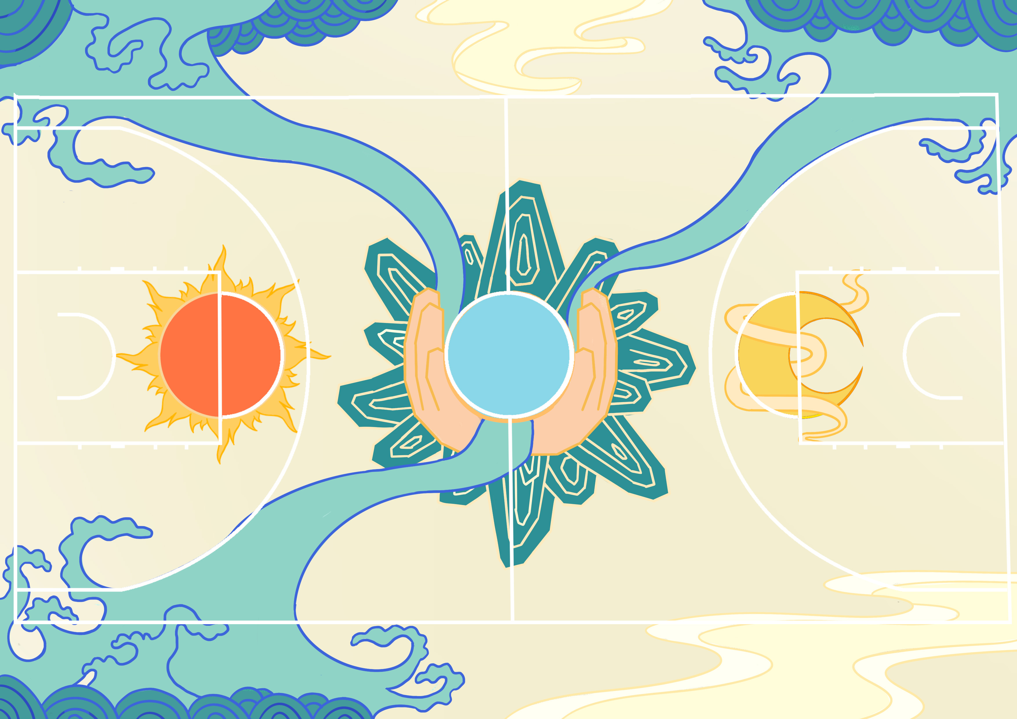 方案1、2是从具象的石榴造型中提取设计要素进行抽象的石榴图案设计,运用大胆的配色方案,形象生动地将篮球场的造型与石榴的造型结合起来,为民族地区的篮球场注入新的生机,也寄予了民族团结美好祝愿。