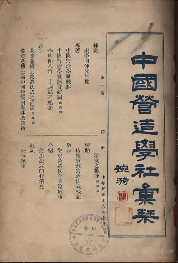 图2 中国营造学社汇刊第一卷第一期
