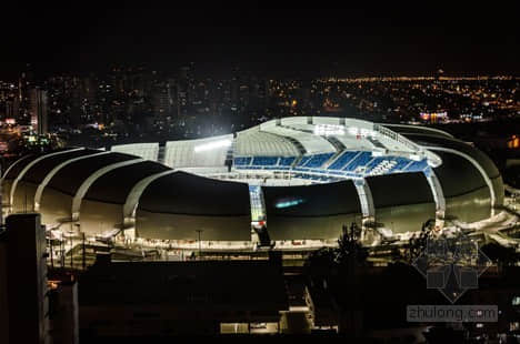 它也是当地的ABC足球俱乐部的新家。Populous给了体育场钢桁架结构的隔板模块。在外部镶贴复合铝瓷砖。这些元素组成了一个非对称形态,参考了城市周围的沙丘景观。半透明的每个花瓣片聚碳酸酯填补每块隔板之间的差距,允许更多的自然光线穿透体育场。“我们已经设计了一个体育馆和一个总规划来展示美丽的das Dunas周边地区的景色,将在2014年世界杯创建一个独特的气氛,”Populous的高级官员Christopher Lee说,他领导了这一项目。体育场能容纳42000名观众,第一行距离体育场仅有15米远。10600个座位可以暂时移除,加上四个VIP休息室为1000位客人提供私人观赛区域。用于球场的草种被选为适宜其地区炎热气候的种类,它可以使用从屋顶收集的雨水灌溉,作为一个完整的排水系统的一部分。比赛结束后,场馆预计将举办其他体育活动、音乐会和展览等 。还配有一个22000平方米的广场,可以成为一个活动中心。