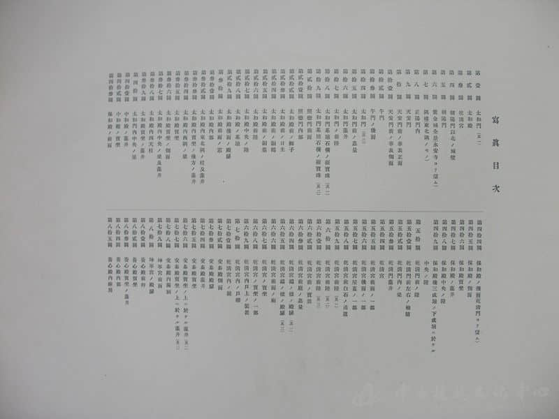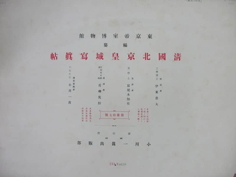 中国建筑图书馆珍藏的《清国北京皇城写真帖》是由日本东京帝室博物馆编辑,工学博士伊东忠太撰写文字说明,文物摄影家小川一真攝影制版,于1906年(明治三十九年)出版的一部关于清末北京皇城宫殿及皇家园林的摄影图片集, 共有一百七十二幅珂罗版黑白照片。