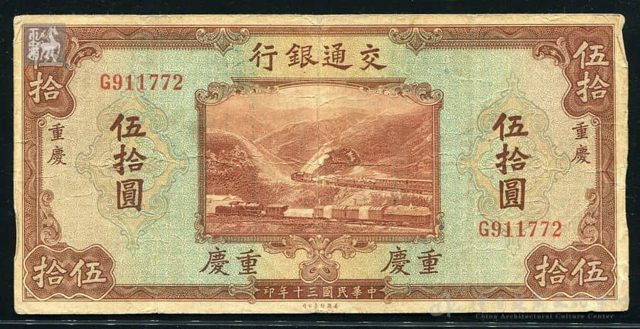 图10 中國民國交通銀行發行的伍拾元正面