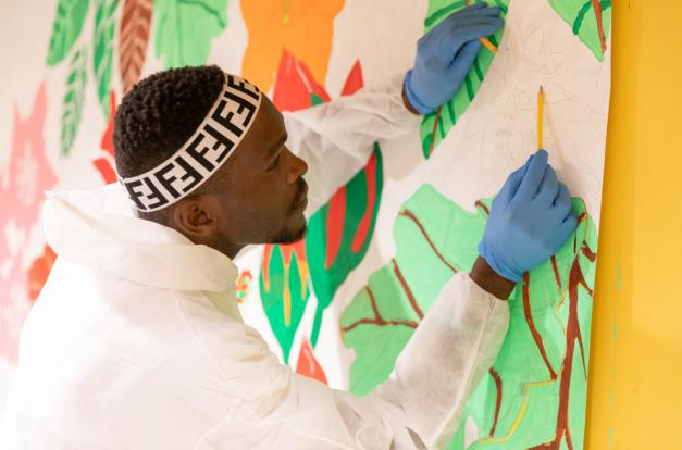 除了针对一般的青少年,还有专门针对问题青少年的教育——青年恢复实践(restorative practice youth)板块,这一板块针对少管所和被寄养的青少年,用艺术给与他们好奇心、革新力和安全感。这是一个为这群少年准备的艺术表达空间。第四个板块是艺术整合,这一板块是壁画艺术家与全市高中老师的合作,旨在改变教育环境。针对14-18岁青少年的“企业家”(Artrepreneurs)板块,通过和艺术家及商业领头人一起上课发展他们的艺术才能,鼓励学生们设想并开创和艺术相关的小微企业,并在年度活动中不断展示。另有伴随疫情发生开展的名为“壁画动起来(murals on the move)”的板块(图7),在隔离的指定街道提供给成年人和孩子安全的娱乐空间,通过流动壁画、活动书籍和地面壁画三个活动来实现,在城市各个壁画中心(MAP的社区店面)开展三周的壁画艺术课,团结社区改善公共空间。教育项目的最后一个板块是学徒项目,18-21岁完成过壁画课程的学生可以申请壁画制作、艺术教育或商业方面的有偿暑假实习,专业人员会进行综合培训包括写作、演讲等,通过网络获得工作机会。