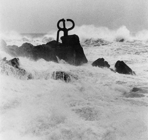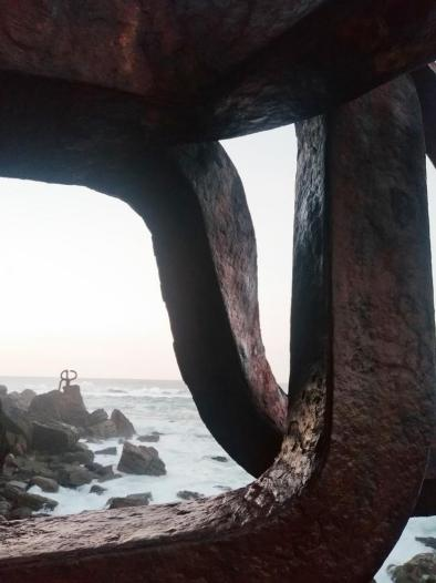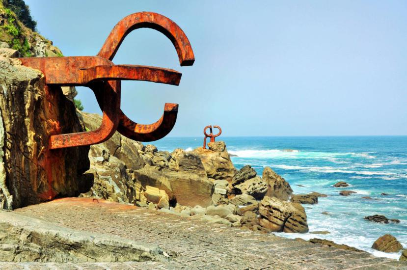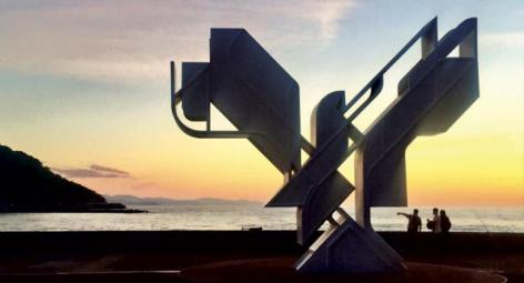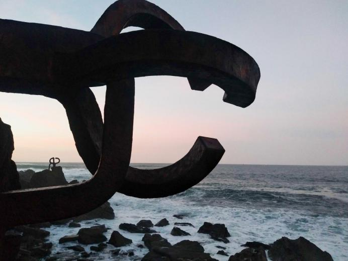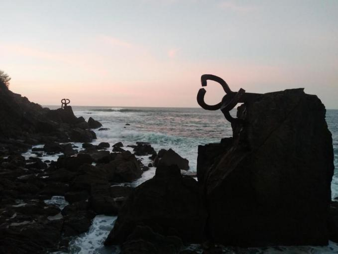 沿着圣˙塞巴斯蒂安的海边走过去,海浪一阵阵拍打着岸边的礁石和巨大的混凝土防浪石,浪花四溅冲上岸堤,洒在游客身上,游客们不时发出欢快的尖叫声。在城市西北,远离市中心的地方,就是翁达雷达海滩,这里背靠悬崖,北朝大西洋,海滩巨石林立。由于地处贝壳海湾的西北口,这里也是一个风口,来自大西洋的狂风巨浪与山石在此激情碰撞,宛如大自然的交响乐。这里是风和海汇合入城的地方。在这里有一处举世闻名的公共艺术作品,这就是《风之梳》(西班牙语:El Peine del Viento,英语:Combs of the Winds)。这也是我们来到圣˙塞巴斯蒂安的主要目的,探访这件具有非常意义的公共艺术作品和它的创作者,以及这件作品对一个城市复兴带来的影响。