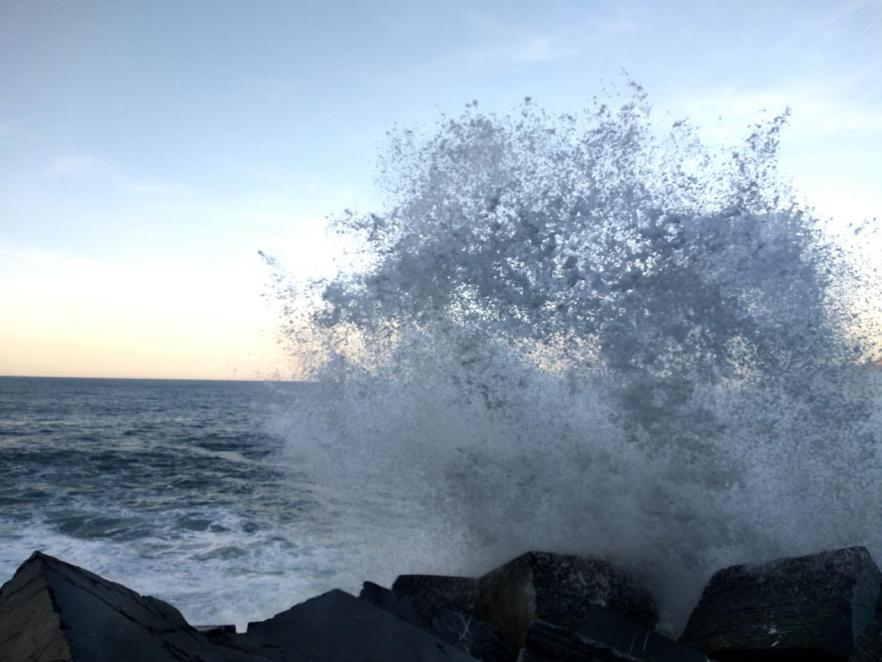 当大海汹涌澎湃时,《风之梳》成为独特的景观,最狂野的波浪在雕塑的尖齿间翩翩起舞,在摧枯拉朽的大风中挑战钢铁的力量,创造出无与伦比的表演。除了欣赏三座雕塑在海浪不断的冲击下岿然不动的身影,还可以风和海游戏,看海浪升起又落下,然后像间歇泉一样淘气地从广场的洞口中喷起。走路时一定要小心避开这些洞口,因为说不定某一刻,一股巨大的喷泉将会突然从一个洞口喷出而击中游人(图10)。