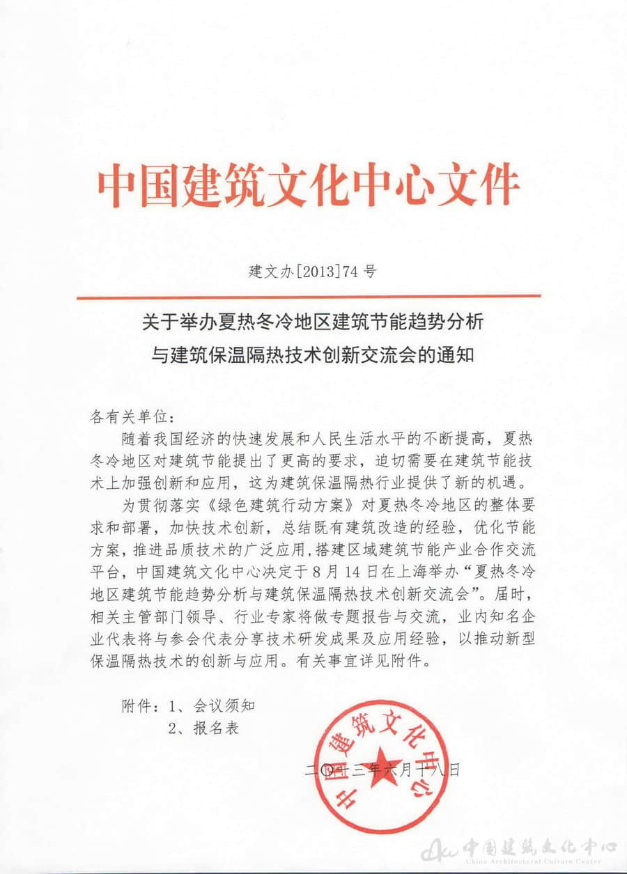 关于举办夏热冬冷地区建筑节能趋势分析与建筑保温隔热技术创新交流会的通知
