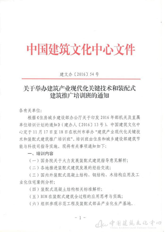 关于举办建筑产业现代化关键技术和装配式建筑推广培训班的通知