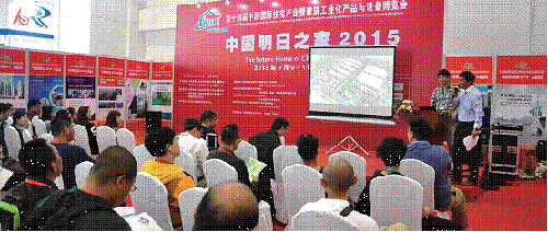 第二个板块为“中国明日之家2015·装配式建筑集成示范区”,由工业化装配式结构房屋和工业化装配式绿色钢结构集成住宅组成。其中工业化装配式集成房屋由宝业集团股份有限公司承建的同一套房屋同时展示了装配式混凝土结构(PC)和轻钢结构两种产业化建造方式。轻钢结构示范房屋平面布置灵活,能满足多样性要求,单位用钢量低,安装方便快捷;装配整体式混凝土结构(PC) 体系具有尺寸精准、施工快捷、防水性能良好的特性。钢结构集成住宅(钢管束体系) 由杭萧钢构股份有限公司设计集成承建的装配式钢结构住宅采用钢管混凝土束组合剪力墙结构。既能充分发挥钢结构制作工业化程度高、施工速度快、抗震性能高、 建设周期短等特点,又具有剪力墙结构墙体随功能要求灵活布置的长处。该示范房空间布局灵活,室内有效使用面积有所增加。