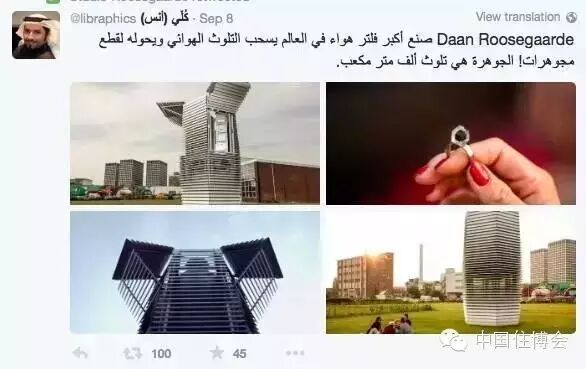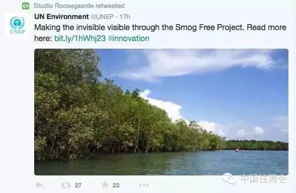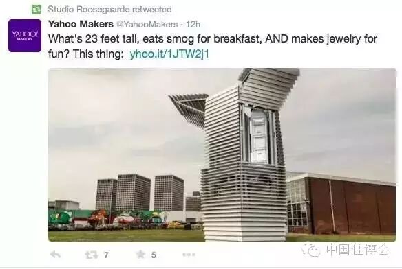 ▼全世界各地的人开始关注Daan的项目,并且在twitter上转发,所以很多人开始对空气净化塔有更多的了解。