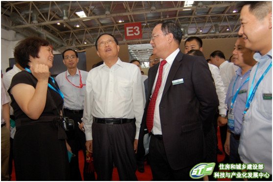 2015年9月9日,住房城乡建设部陈政高部长视察第14届中国国际住宅产业暨建筑工业化产品与设备博览会。部科技与产业化发展中心冯忠华主任陪同参观。
