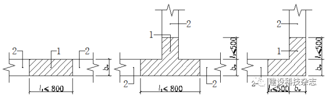 l1、l2、l3、l4表示现浇混凝土后浇带长度;bw表示现浇混凝土后浇带厚度