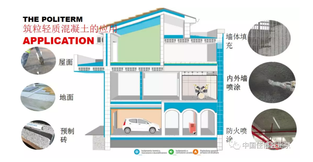 顺港筑邦环保科技有限公司引进意大利EDILTECO集团聚苯乙烯颗粒改性技术生产出筑粒,筑粒与水泥结合后,可用在屋面、地面、预制类、填充墙、内外墙喷涂、防火喷涂等可广泛应用于建中体系中。