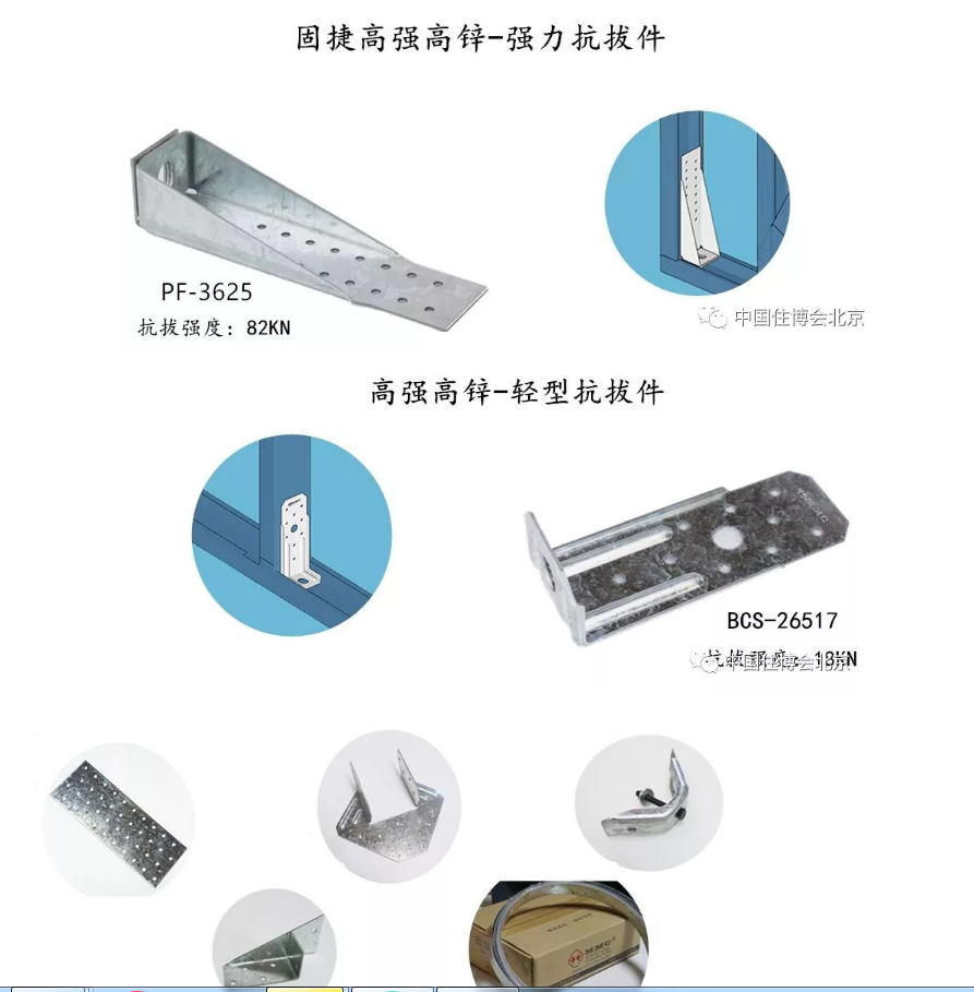产品分为:强力抗拔件、轻型抗拔件、抗风拉件、梁托连接件、齿板连接件、飓风卡件、预埋件、柱脚连接件、防风抗震拉带、重型木结构连接件等