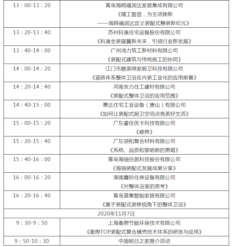 为推动产业结构转型升级,提质增效,充分展示参展企业的技术成果、最新产品及综合服务解决方案,组委会拟在展会现场举办机械设备、装配式建筑及内装工业化三个专题的技术交流会及中国住博会主题示范展“中国明日之家”推介活动。