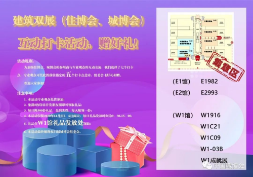 2020中国城博会还为到场观众准备了贴心小礼物,需要您完成打卡任务后,去w1馆领取礼品。每日礼品数量有限,等您来取噢!