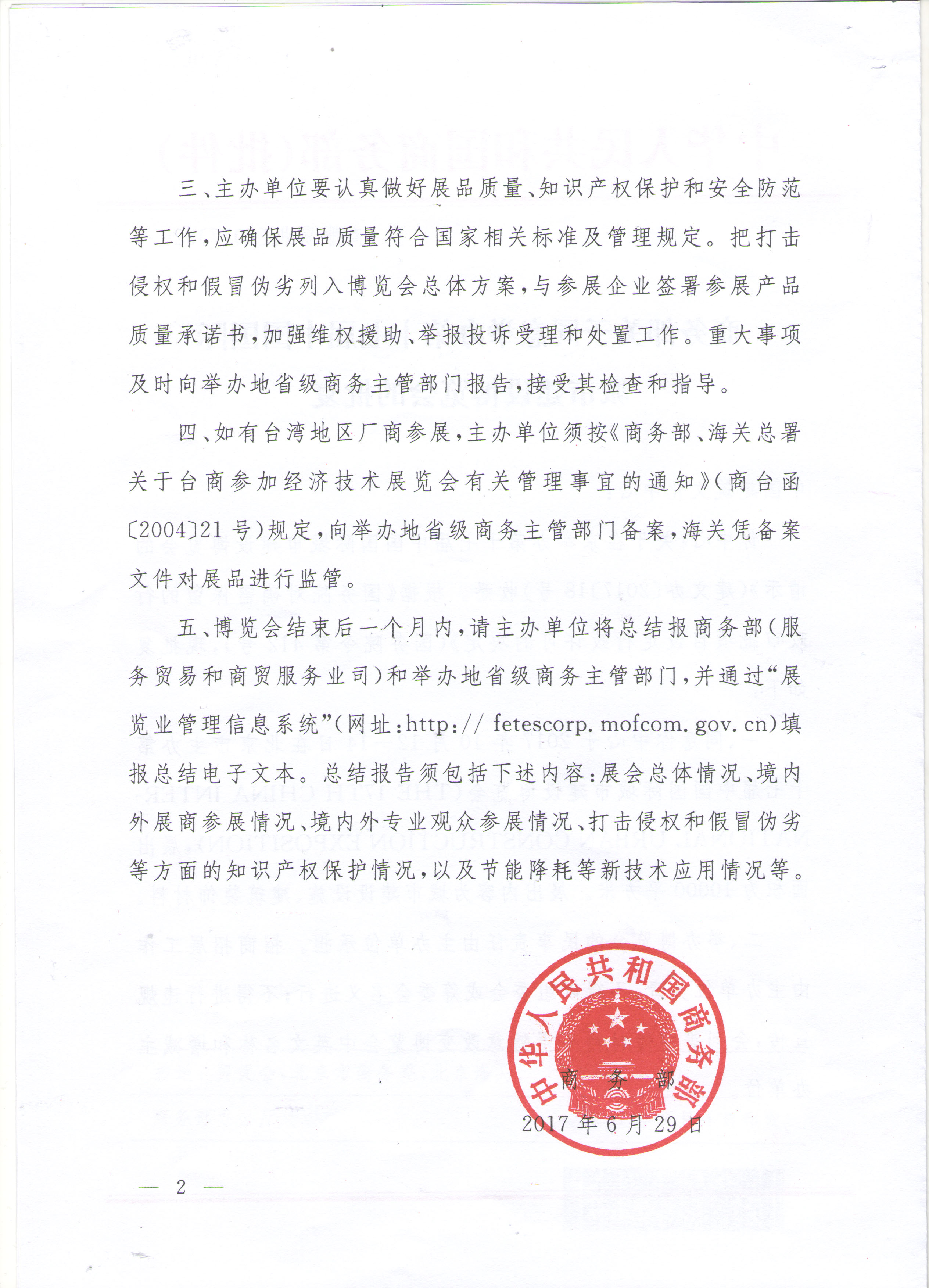 上一篇:商务部关于同意举办第十八届中国国际城市建设博览会批复