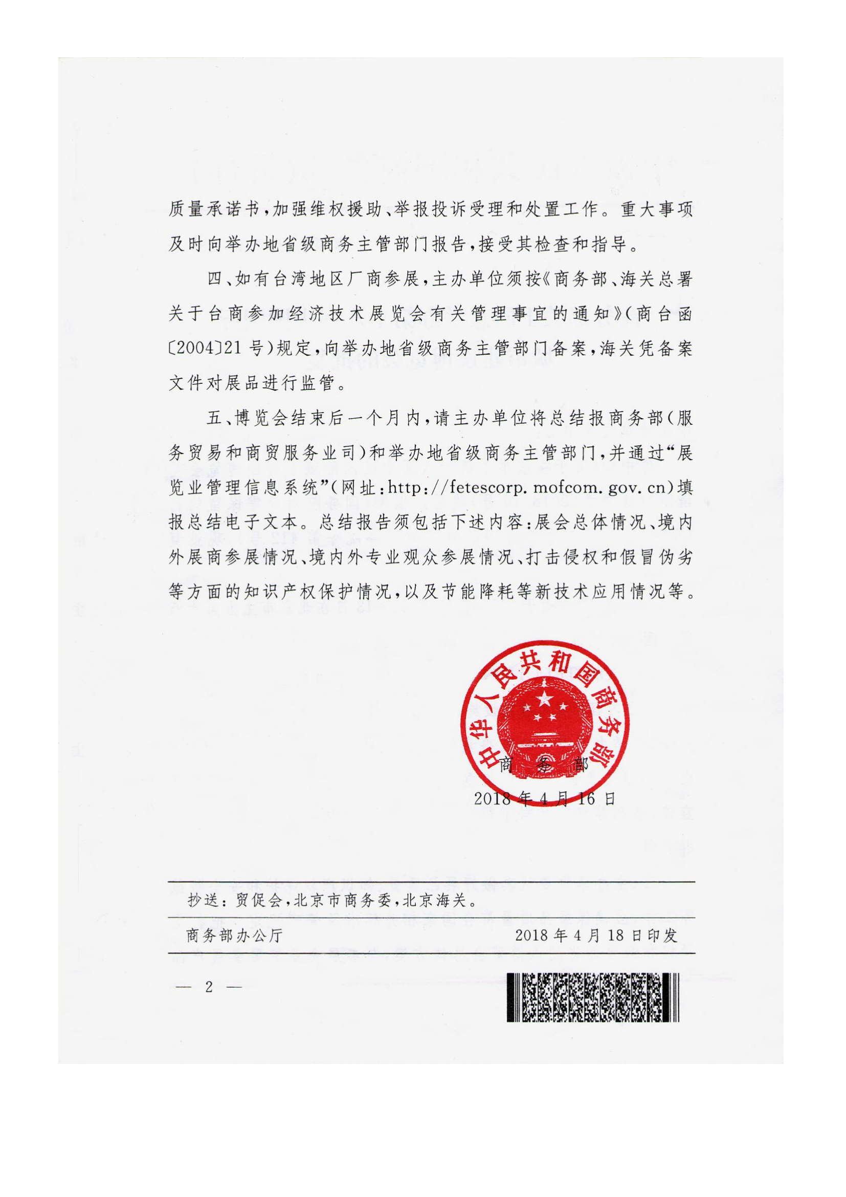 商务部关于同意举办第十八届中国国际城市建设博览会批复