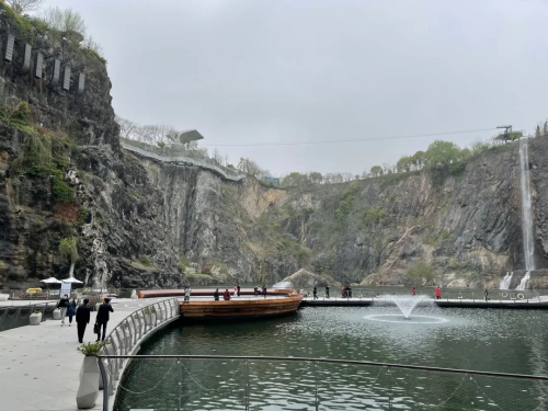 调研组先是参观了由中建八局总承包公司承建的“上海佘山世茂深坑酒店矿坑修复和城市更新改造项目”。