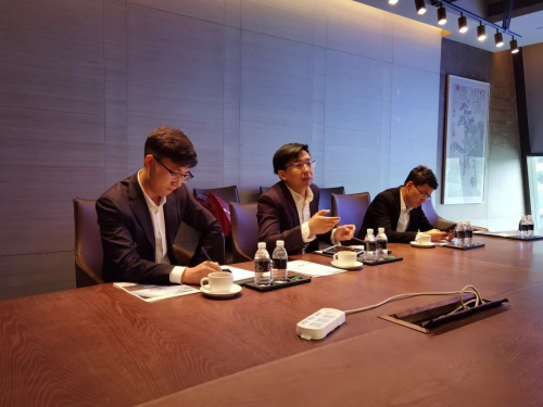 随后,调研组围绕该项目的施工技术、创新科技等内容与技术负责人进行了交流座谈。座谈会上,中建八局的技术工程师从主题异型钢结构施工、人员材料垂直运输、爆破工作难点、永久性水下结构施工技术、混凝土向下超深77m三级接力输送技术、消防设计、BIM三维模拟技术应用等多角度介绍了中建八局在承接该项目中做出的技术性突破。作为城市更新的亮眼工程,调研组也表达了对深坑酒店项目的赞赏,同时也希望该项目的相关技术专利和建造经验可以在更广阔的平台进行宣传、展示。