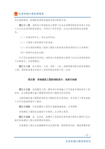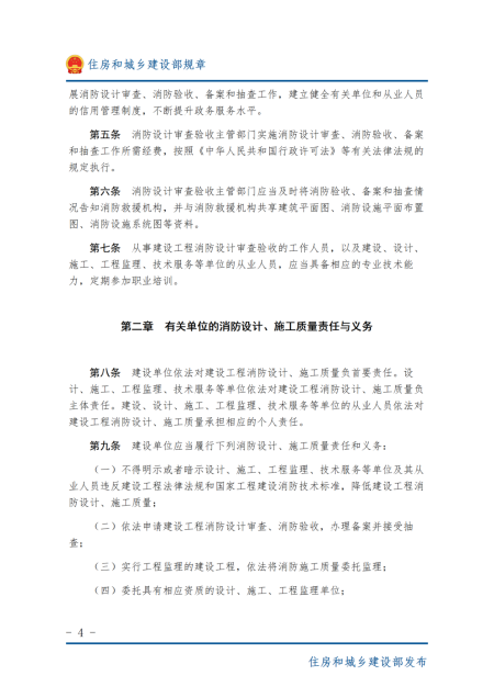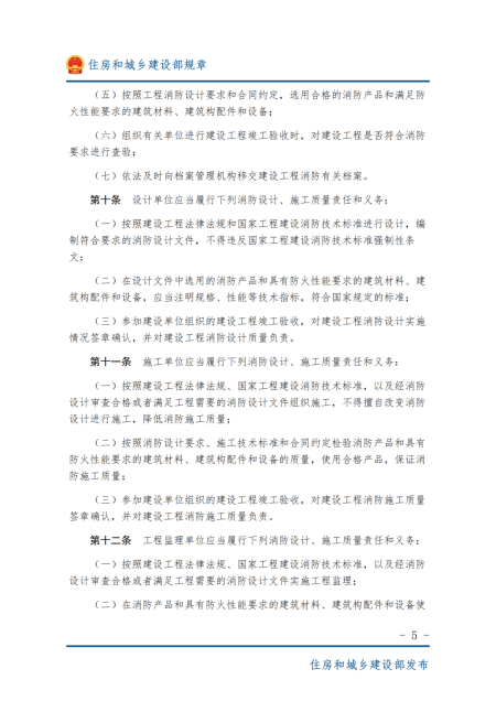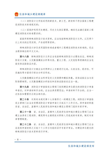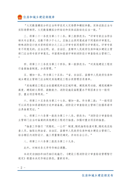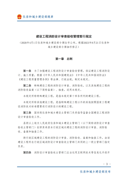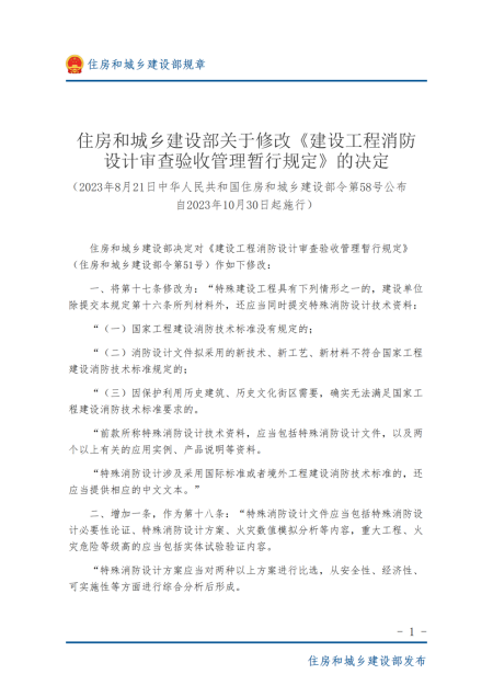 为进一步加强建设工程消防设计审查验收管理,保证建设工程消防设计、施工质量,根据《中华人民共和国建筑法》《中华人民共和国消防法》《建设工程质量管理条例》等法律、行政法规,住房城乡建设部决定对《建设工程消防设计审查验收管理暂行规定》(住房和城乡建设部令第51号)作如下修改: