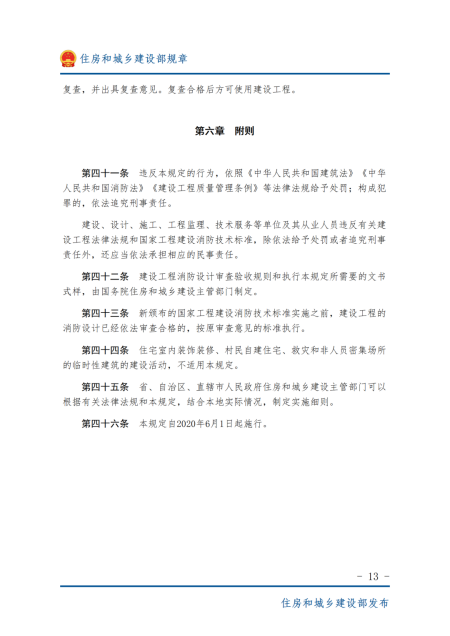 以下为新发布的《建设工程消防设计审查验收管理暂行规定》全文: