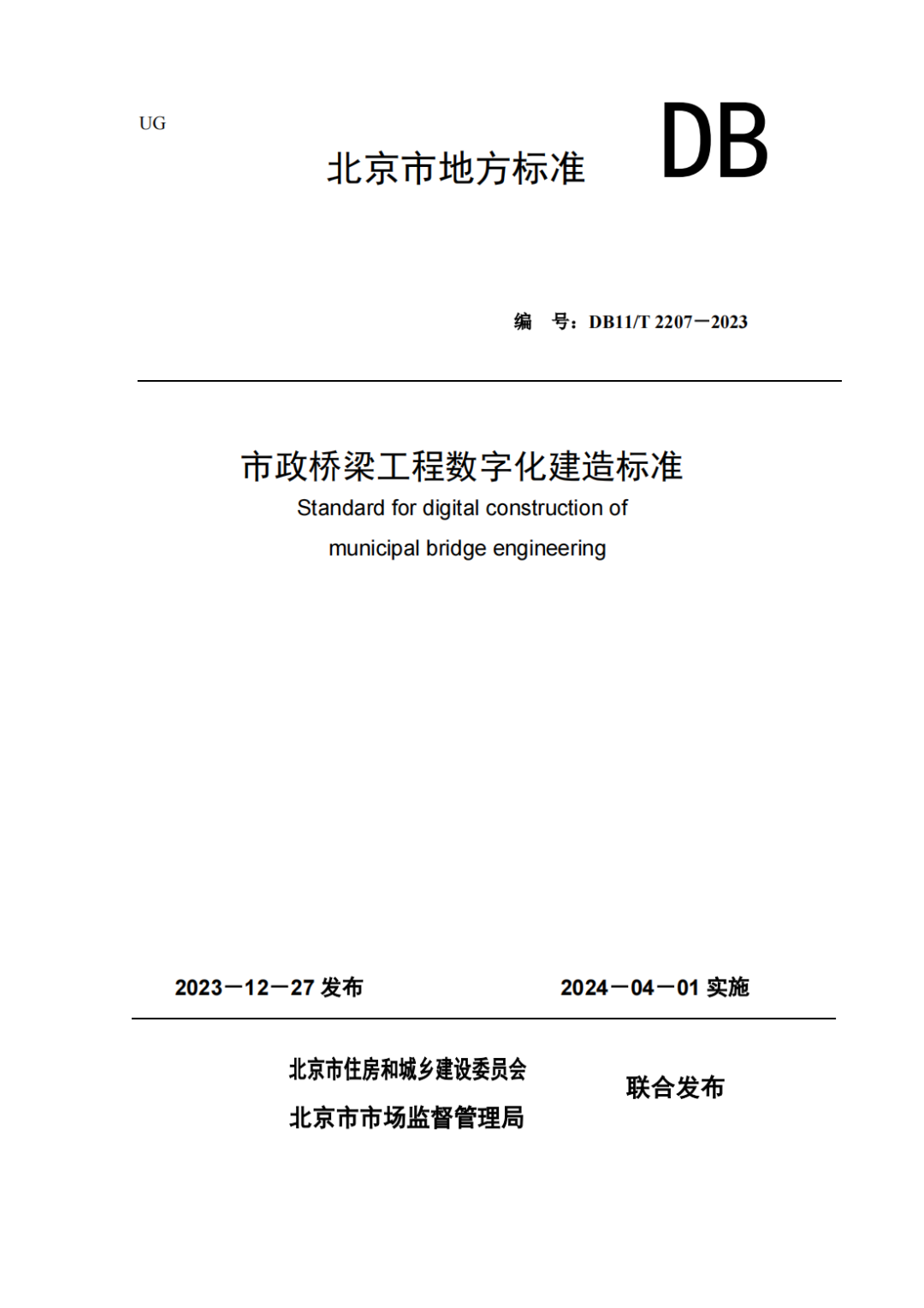 为落实城市基础设施高质量发展要求,满足交通建设行业数字化转型需要,指导北京市政桥梁智能建造实施,由北京市住房和城乡建设委员会会同北京市市场监督管理局组织制定,北京市政总院与北京城建集团有限责任公司、北京城建道桥建设集团有限公司联合主编的《市政桥梁工程数字化建造标准》(DB11/T 2207-2023)(以下简称《标准》)将于2024年4月1日实施。