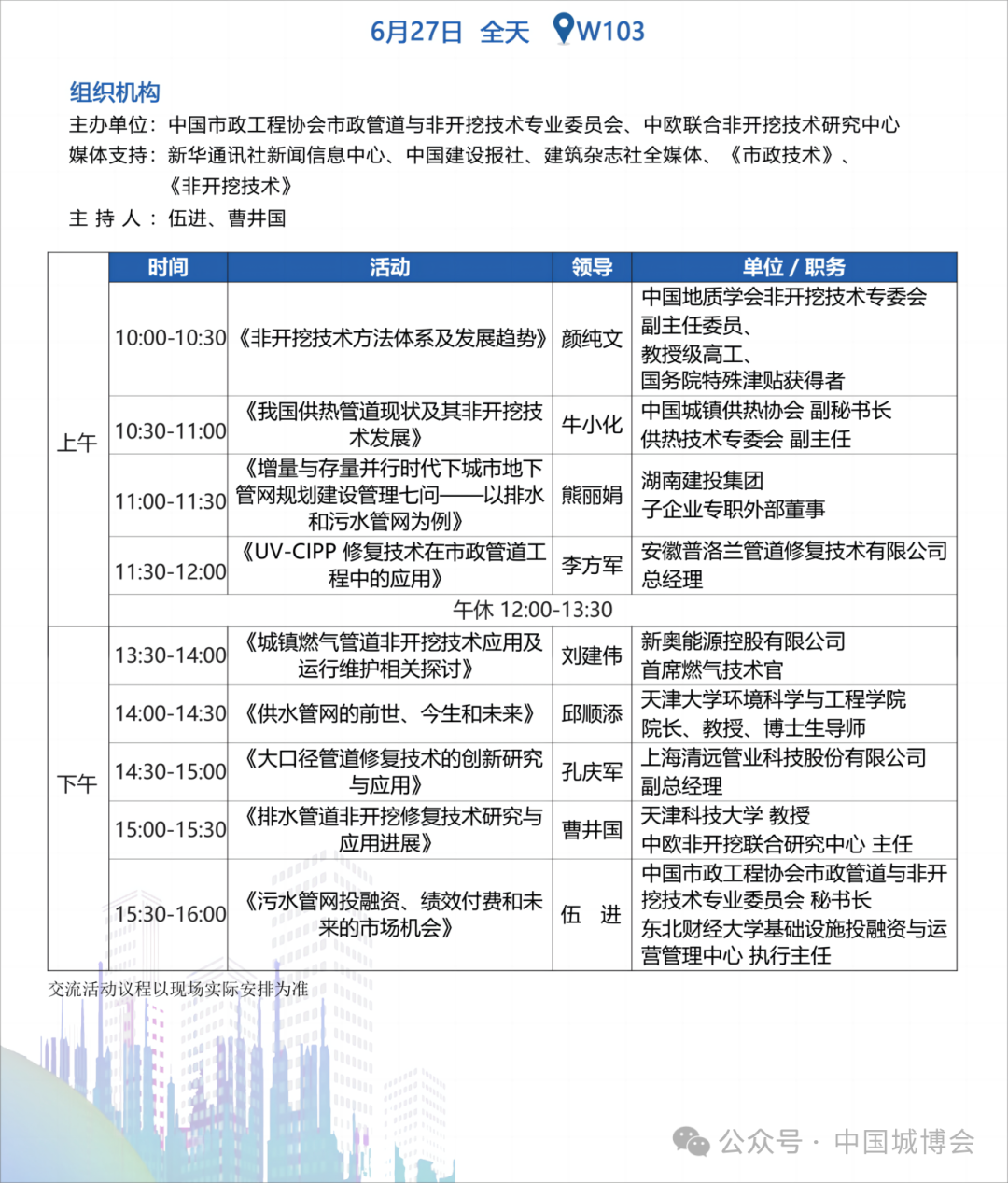 市政管道与非开挖技术交流会 | 6月27日全天 | W103 |