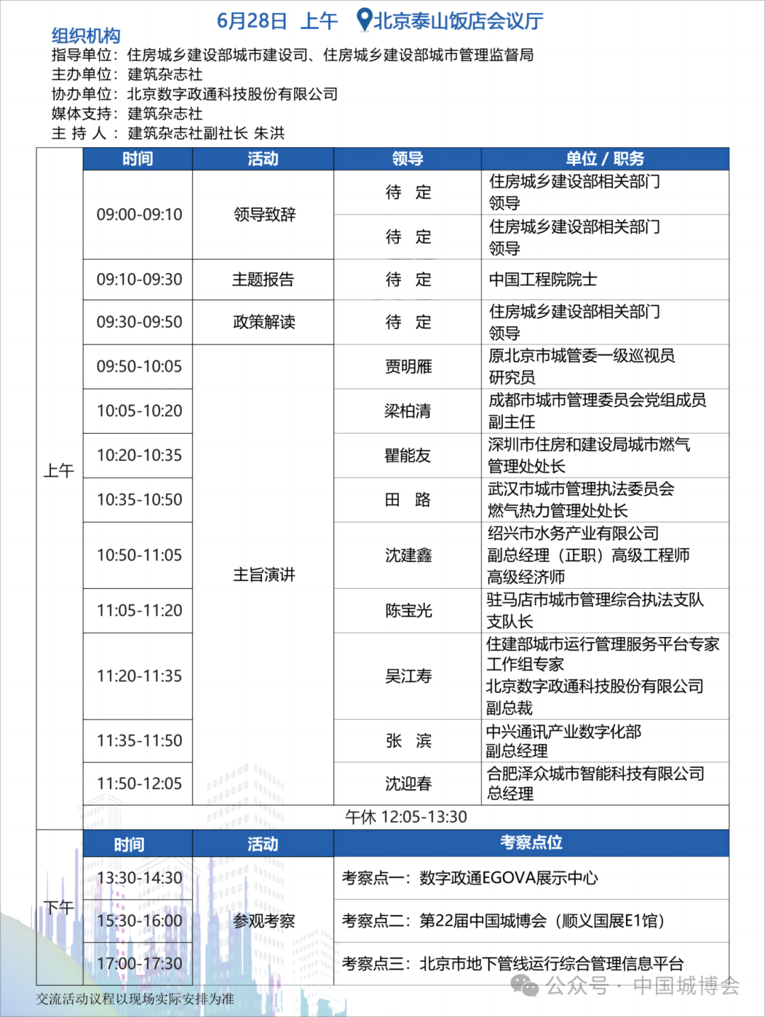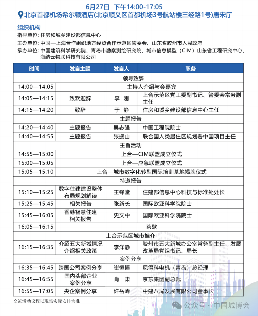 数字住建赋能城市可持续发展大会 | 6月27日下午 | 北京首都机场希尔顿酒店唐宋厅 |