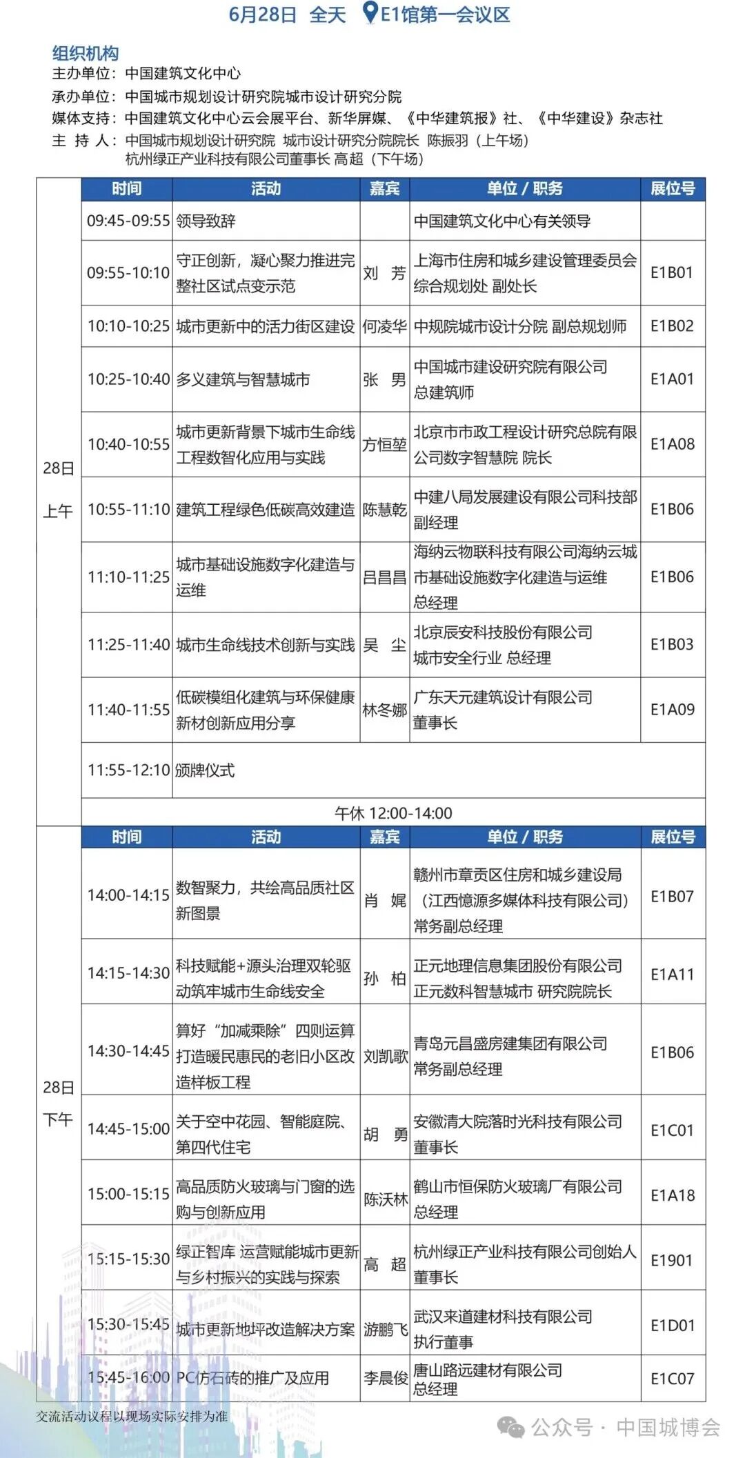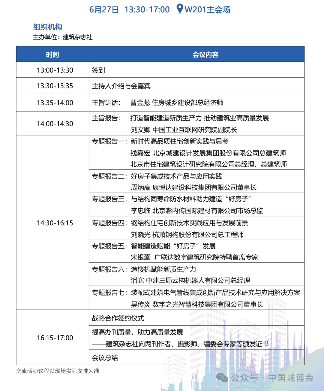 第11届美丽中国—住房城乡建设高质量发展交流大会 | 6月27日下午 | W201 |