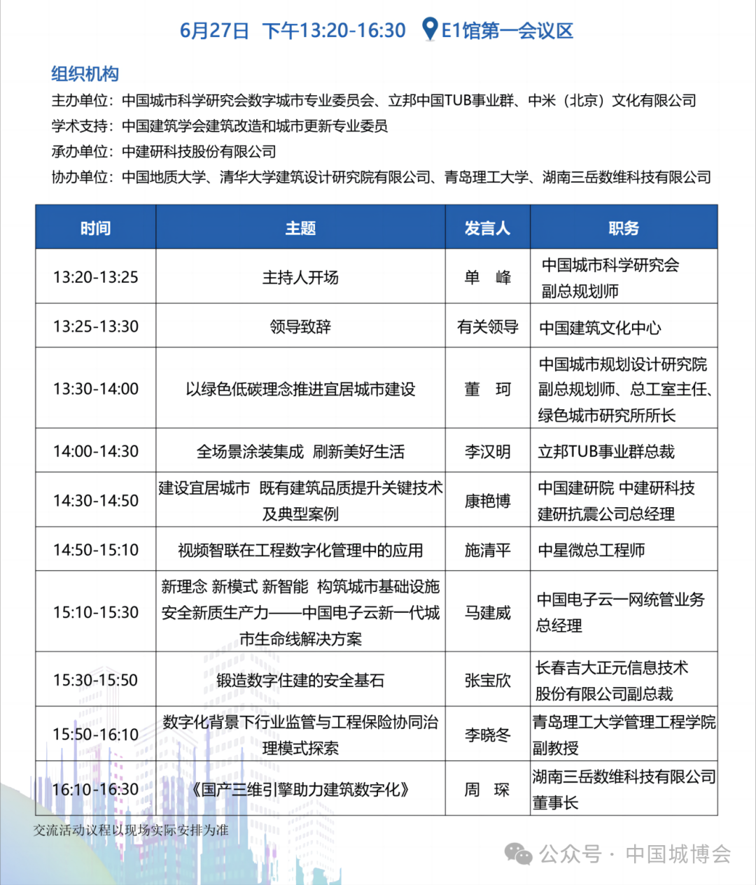 宜居城市&数字城市建设发展科创大会 | 6月27日下午 | E1馆第一会议区 |