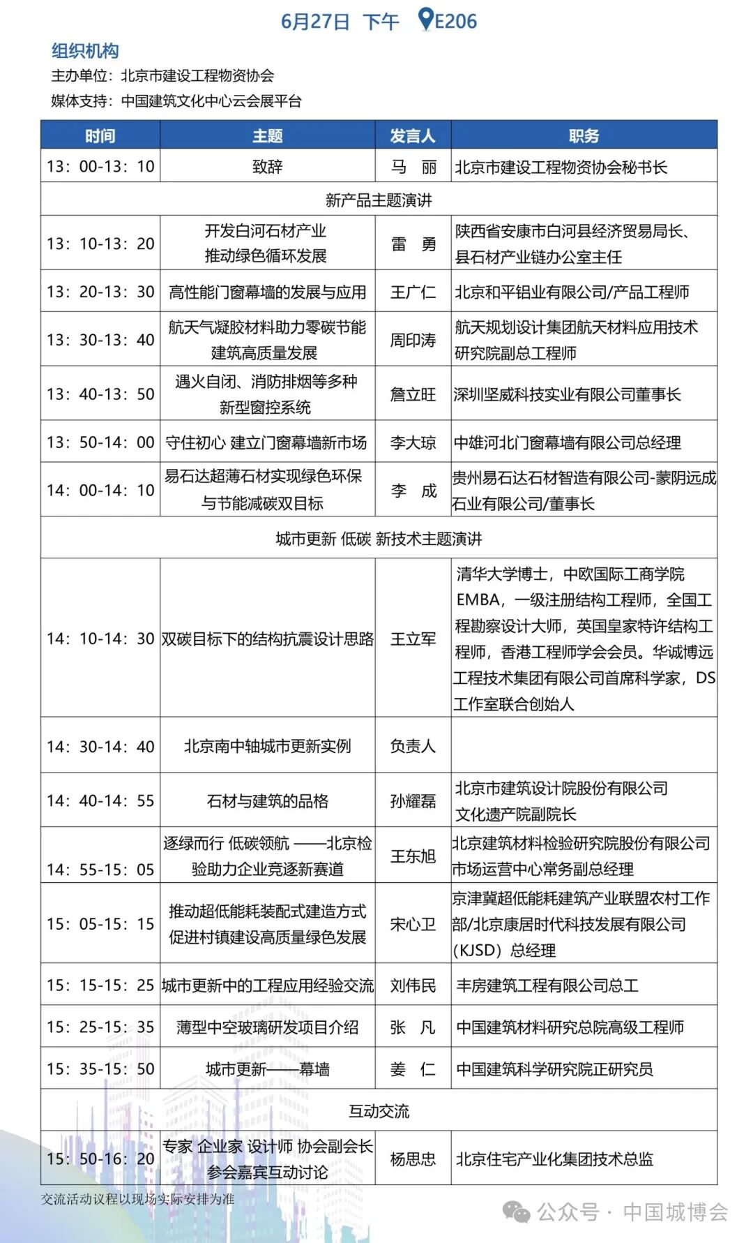 城市更新与工程材料新质生产力发展大会 | 6月27日下午 | E206 |