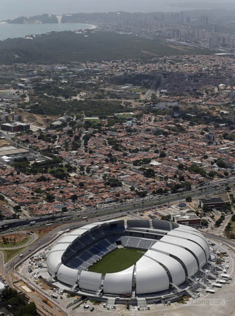 摘要:体育建筑公司Populous完成了巴西世界杯北里奥格兰德42000个座位的体育场。das Dunas体育场是六个世界杯新场馆之一,2014年将用于举办四场小组赛。 建筑设计:Populous 项目地址:巴西,北里约格朗德 它也是当地的ABC足球俱乐部的新家。Populous给了体育场钢桁架结构的隔板模块。在外部镶贴复合铝瓷砖。这些元素组成了一个非对称