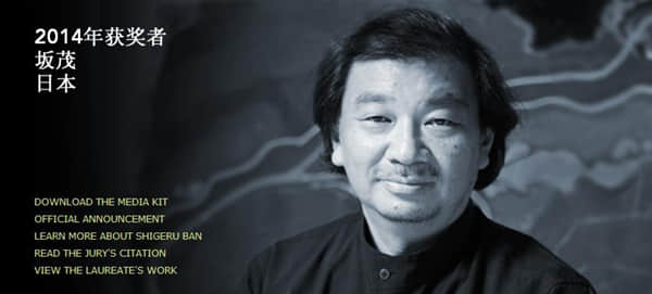 普利兹克奖于北京时间今日(注:3月25日)凌晨5时公布2014年度获奖者——日本建筑师坂茂,颁奖典礼将于6月13日在荷兰阿姆斯特丹国家博物馆举行。 评语 自三十五年前设立以来,普利兹克建筑奖的宗旨一直都是表彰当代在世建筑师的杰出建筑作品以及其对人类所做出的重要而持久的贡献。 坂茂,2014年获奖者,将该建筑奖的精神发挥得淋漓尽致。作为一名