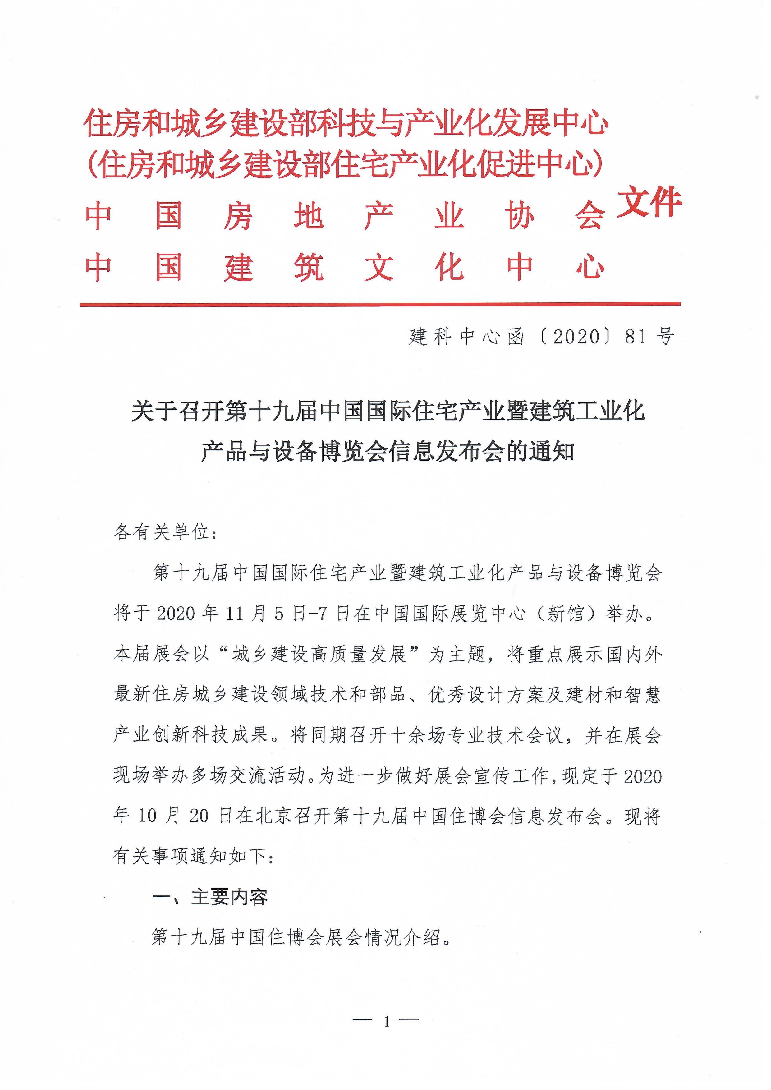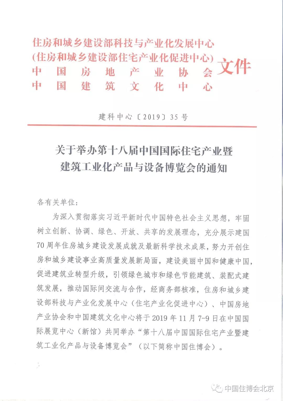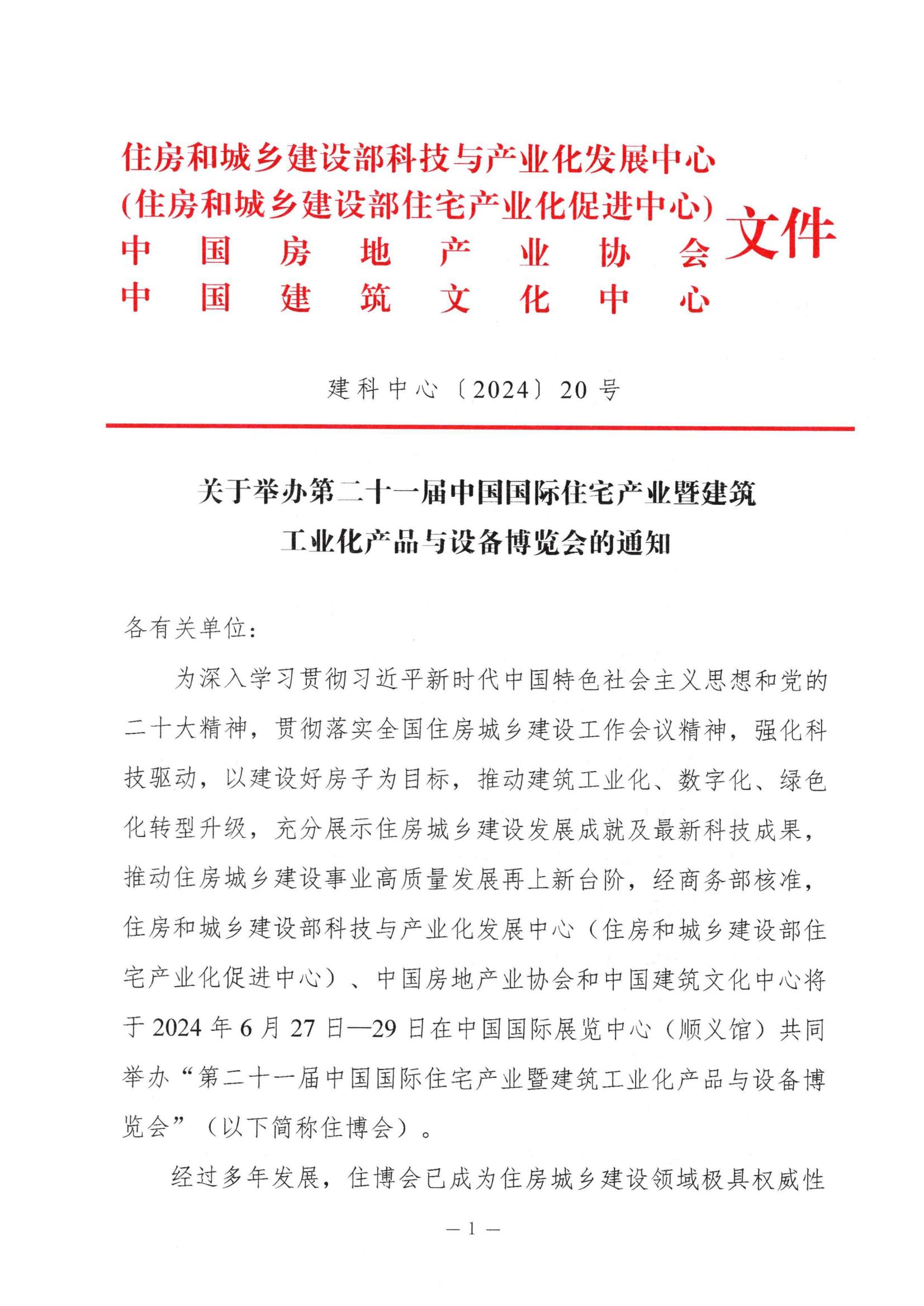 各有关单位: 为深入学习贯彻习近平新时代中国特色社会主义思想和党的二十大精神,落实新发展理念,以让人民群众住上更好的房子为目标,推动建筑工业化、数字化、绿色化转型升级,充分展示住房城乡建设发展成就及最新科技成果,提升住宅等建筑产品品质,推动住房城乡建设领域高质量发展,经商务部核准,住房和城乡建设部科技与产业化发展中心(住房和城乡建设部住宅产业化促进中心)、中国房地产业协会和中国建筑文化