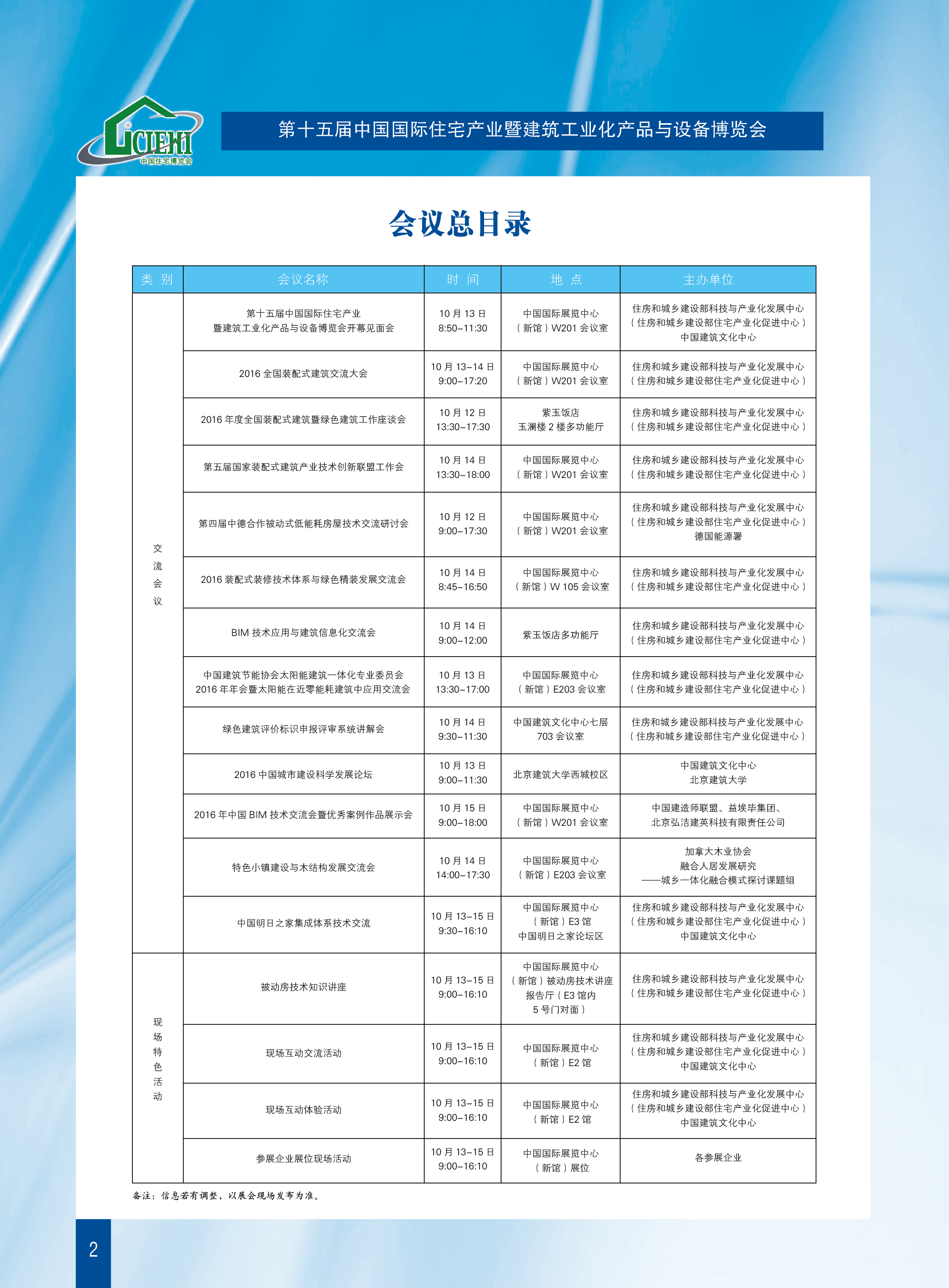 “2016年中国住博会” 会议日程