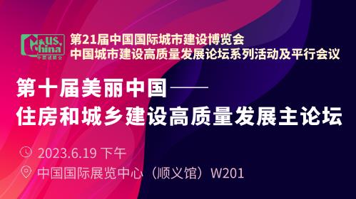 第二十一届中国国际城市建设博览会 第十届美丽中国总论坛——住房和城乡建设高质量发展 主论坛 主办单位:住房和城乡建设部建筑杂志社 冠名单位:九牧集团有限公司 协办单位:中国建筑节能协会新型建筑工业化与绿色发展专业委员会、中建科技集团有限公司、广联达科技股份有限公司、北京澎内传国际建材有限公司、深圳瑞捷工程咨询股份有限公