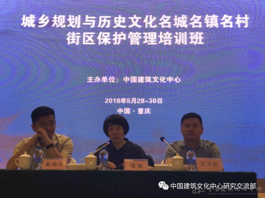 2018年5月28日至30日,中国建筑文化中心研究交流部在重庆举办城乡规划与历史文化名城名镇名村街区保护管理培训班。来自全国各地城乡规划管理部门、规划设计单位等240余人参加了此次培训。 部城市建设司历史名城保护处调研员傅爽、重庆市规划局历史文化名城保护处副处长方钱江、重庆大学建筑城规学院副教授覃琳、中国城市规划设计研究院历史文化名城研究所所长鞠德东、重庆大学教授赵万民