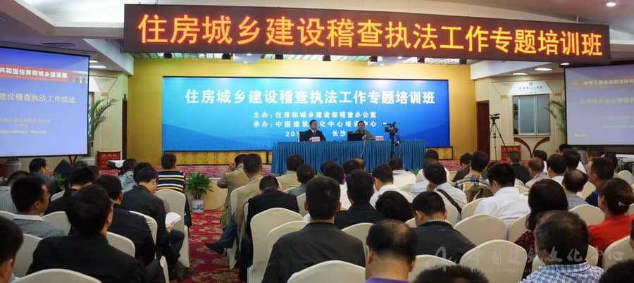2014年4月16日至18日,由住房城乡建设部稽查办公室主办,中国建筑文化中心培训中心承办的“住房城乡建设稽查执法工作专题培训班”(城乡规划稽查执法专题、房地产市场稽查执法专题)在长沙成功举办。来自全国29个省、自治区、直辖市住房和城乡建设稽查执法系统的近千名代表参加了本次培训。 本次培训分为城乡规划稽查执法和房地产市